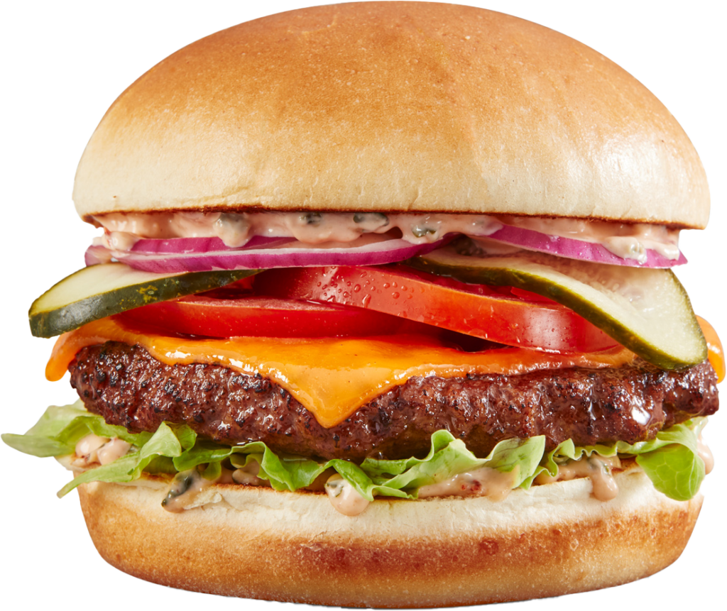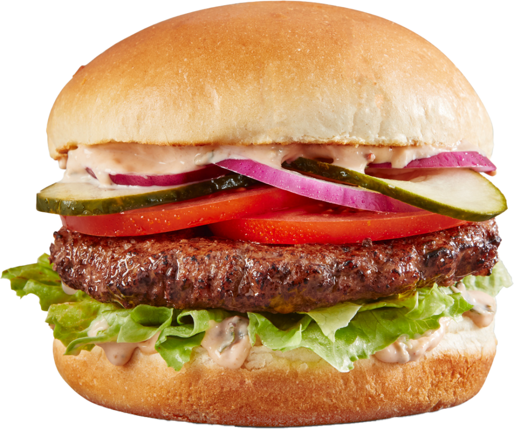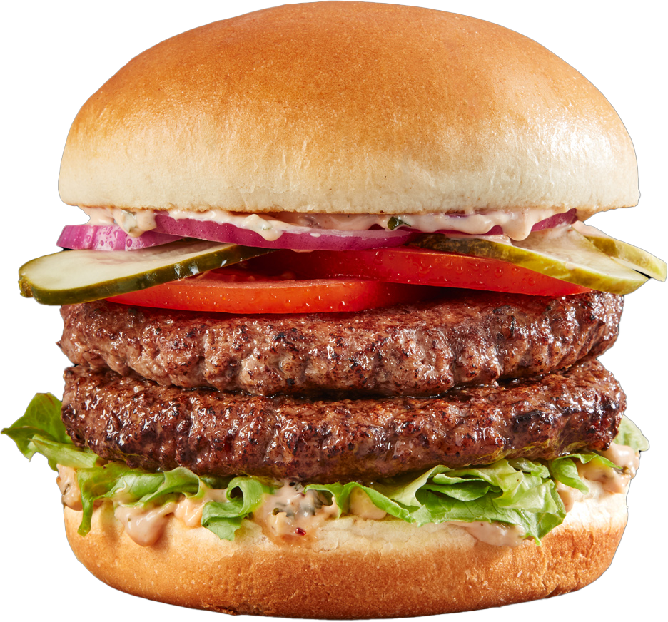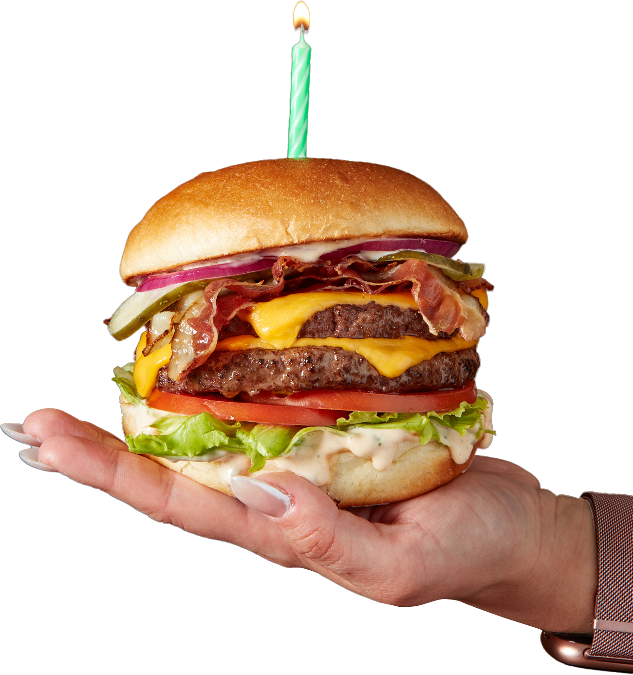 Crispy Bacon, American Cheddar, Lettuce, Tomatoes, Onions, Pickles, Signature Sauce, and choose from over 30+ free toppings to make your own creation.